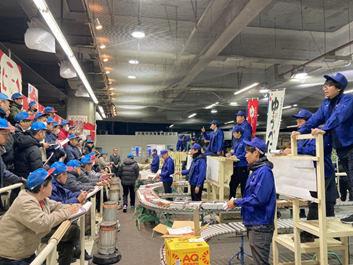 せり場には正月飾りと共に、各産地から寄贈いただいた凧が装飾されました。