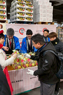 セレモニーでは参加者に対して、ミスりんごあおもりによるPRやサンふじ・王林・ジュース等が