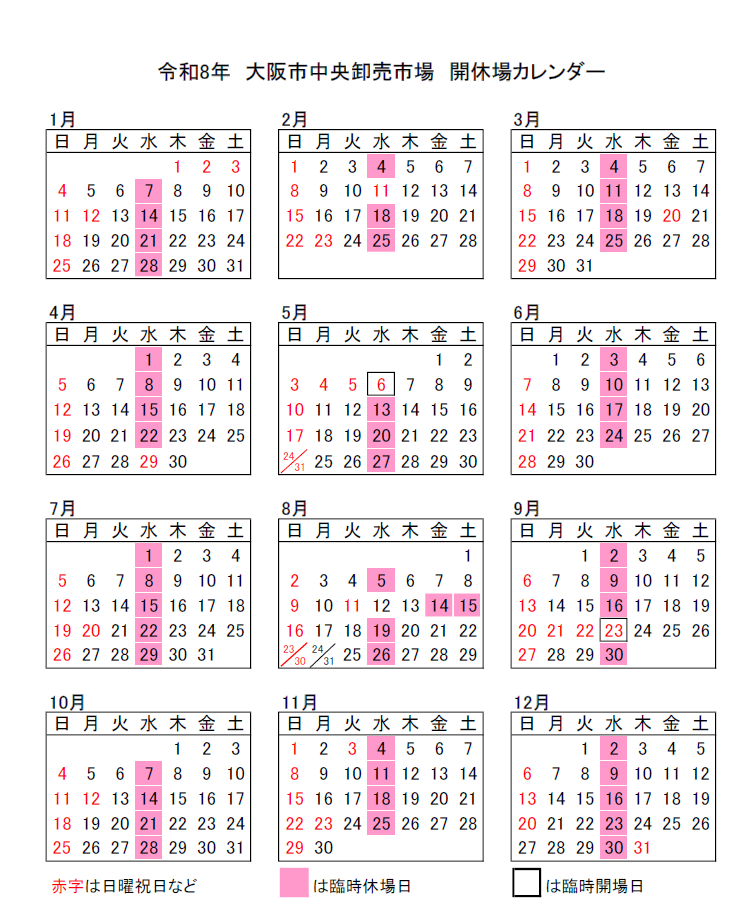 > アラカルト > 市場カレンダー